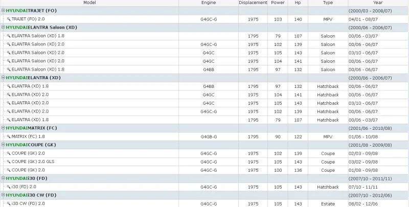 For Hyundai ELANTRA Saloon (XD) (2000/06 – 2006/07)